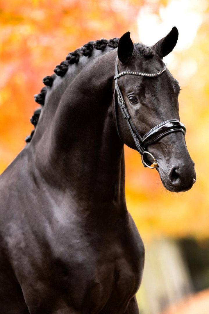 Dieser schwarze Hengst ist uns schon bei der ersten Besichtigung aufgefallen. Er ging mit großer Leichtigkeit durch die Gasse und zeigte dann viel Kraft im Trab und Galopp. Außerdem lief er mit viel Ruhe und Übersicht. Bei der 2. Besichtigung in Den Bosch machte er wieder denselben Eindruck, was auch die Jury sah und beschloss, ihn nicht nur für die KWPN-Leistungsprüfung zu nominieren, sondern ihn auch zum Prämienhengst zu machen. Wir haben auch lange bei der Auktion mitgeboten, haben ihn aber nicht gekauft, weil der Preis sehr schnell gestiegen ist. Ein paar Tage nach der Auktion erfuhren wir, dass Nico Witte ihn zusammen mit Sjaak van der Lei gekauft hatte. In der Zwischenzeit war der Hengst bei Nico Witte in Schijndel eingetroffen, und ich vereinbarte mit ihnen einen Termin, um den Hengst noch einmal zu sehen, und dieses Mal konnten wir ihn bereits unter dem Sattel sehen. Hier beeindruckte er uns so sehr, dass wir beschlossen, einen Teil zu kaufen und Scaramouche auf unserer Deckstation anbieten zu können. Wir denken, dass dieser Prämienhengst mit diesem Pedigree und dem starken Mutterstamm sicherlich eine tolle Ergänzung für unseren Hengstbestand sein kann.