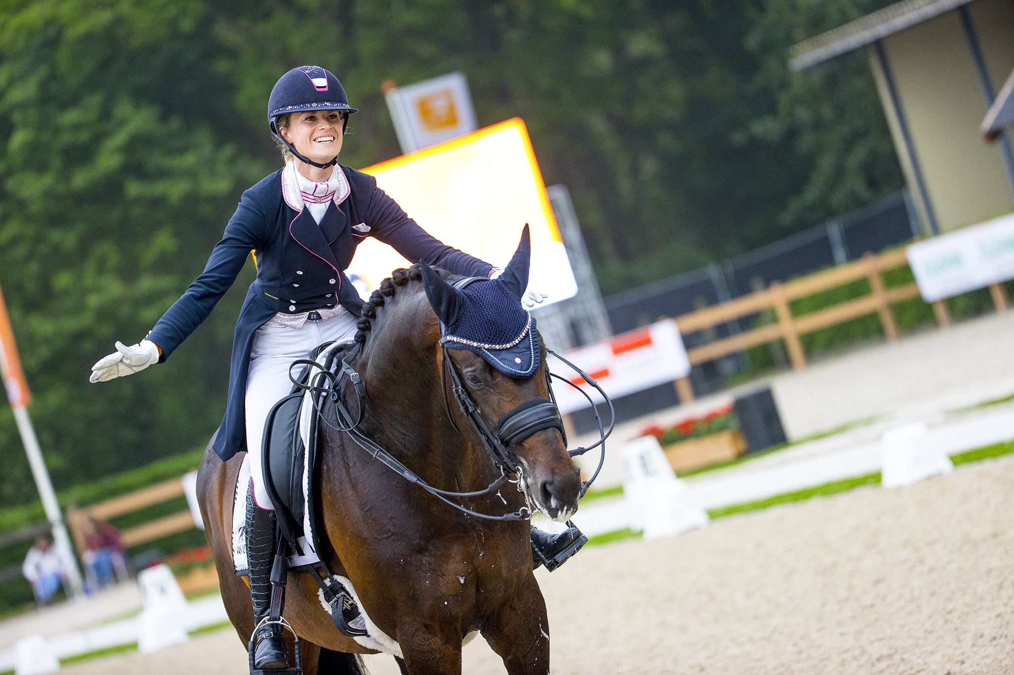 Van Dinja van Liere zijn we küren met moderne muziek gewend, maar voor de Grand Prix koos ze voor een wat klassiekere en meer dramatische Kür. In die Kür had ze natuurlijk de kans om dat te laten zien wat Hermès heel goed kan: piafferen (zelfs als in een complete pirouette op de slotlijn!) en passageren. Verder opnieuw een technisch foutloze kür en dat blijft toch knap met zulke jonge paarden.