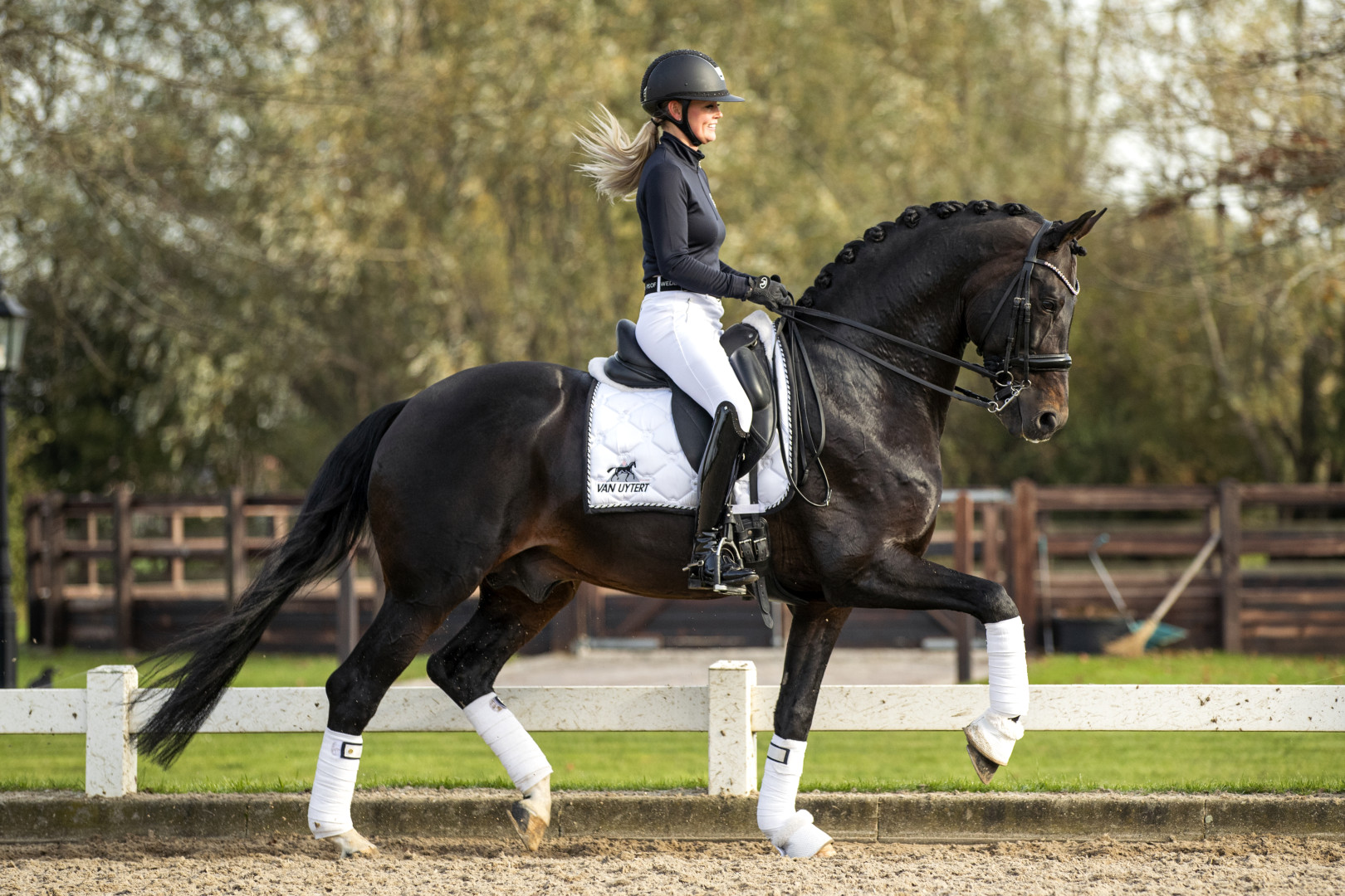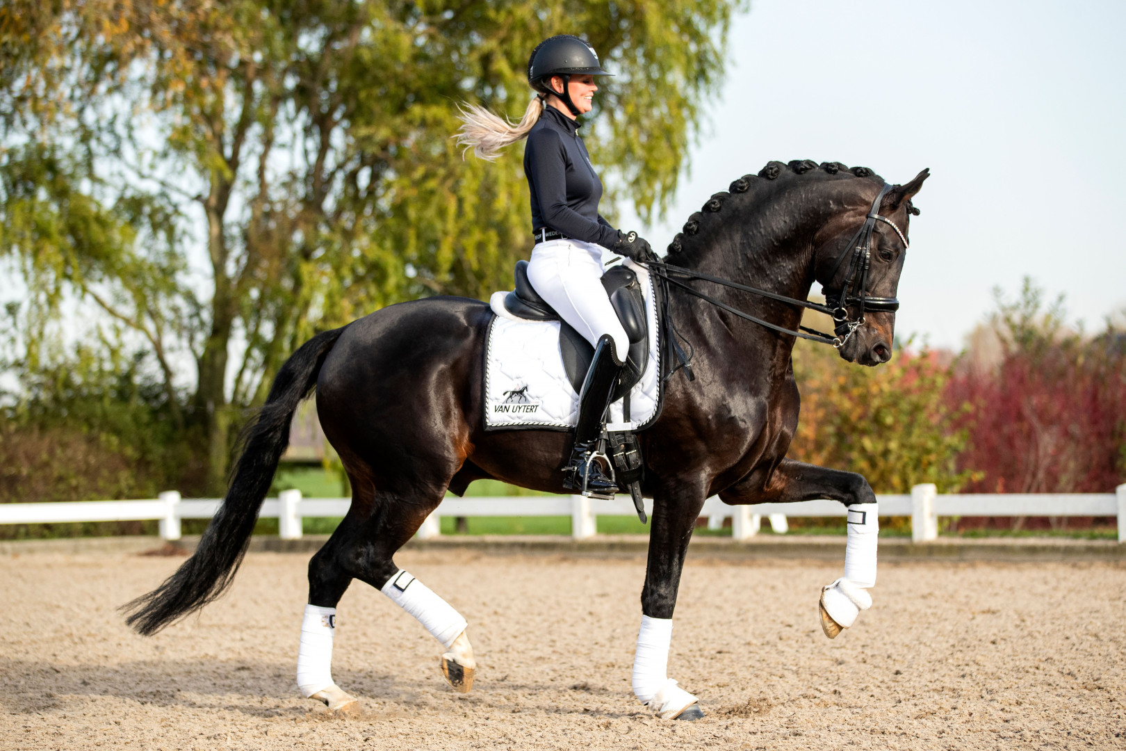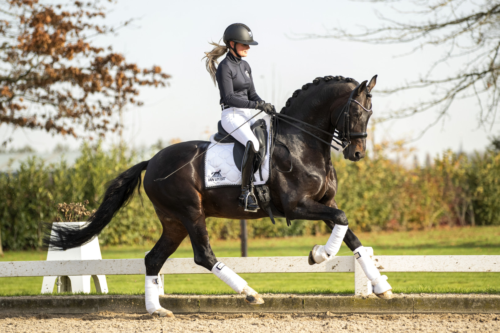 Ferdeaux kam 2020 erneut zu unsere Deckstation. Nach einer Verletzung hat Renate ihm wieder aufgebaut. Der Klick mit diesen wunderschönen Hengst war so gut, dass wir entschieden haben, dass sie ihn weiter reiten wird. Eine harmonische Kombination, dass zeigt sich auch in den Ergebnissen, Fotos und Videos.  Sein Nachkommen machten sich 2020 und 2021 mit mehreren IBOP-Toppern und talentierten Dressurpferden in ganz Europa einen Namen. In der 'Dressurpferdewelt' wird viel über die Entwicklung seiner älteren Nachkommen gesprochen wegen starker Galoppade und Versammlungstalent.