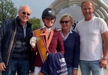 Voor de eerste keer nam Renate van Uytert – van Vliet op de Hippiade deel met 2 paarden.......en met succes. Na twee ritten met haar paarden Just Wimphof en Johnny Depp mag Renate van Uytert – van Vliet twee medailles in ontvangst nemen op Medal Plaza. Met Just Wimphof is Renate kampioen geworden in het ZZ-Licht. Maar liefst 72,238% kregen zij van de juryleden. Ze lieten een hele mooie sterke en stabiele proef zien met als hoogtepunten, de appuyementen in draf en galop en zijn zeer sterke stap waar negens voor genoteerd werden.