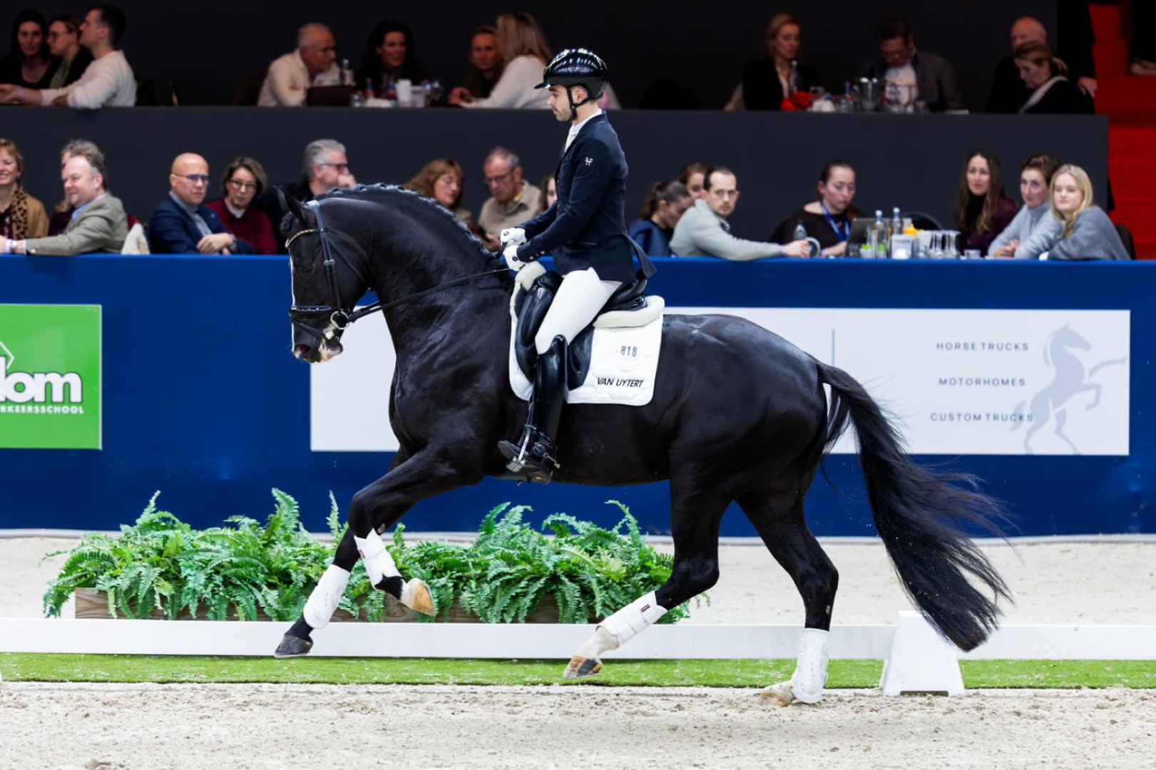 Mit Royal Dynamic haben wir wirklich ein neues Talent für unsere Deckstation entdeckt. Ein sehr schöner, sehr korrekter und langliniger Hengst mit viel Hengstausstrahlung und drei sehr guten Grundgangarten. Er wirkt sehr komplett, hat eine gute Einstellung und will wirklich sein Bestes für den Reiter geben. Renate reitet ihn seit der KWPN-Leistungsprüfung und er gibt ihr ein sehr gutes Gefühl, selbstbewusst, stabil und mit einer guten Gehbereitschaft. Während der hektischen KWPN Hengstschau nahm unser Reiter Alvaro Rodriquez Siscar die Zügel in die Hand und präsentierte dort alle unsere 3 Junghengste. Er zeigte sich bei dieser Präsentation des neuen Jahrgangs fantastisch. Was für eine Ausstrahlung dieser Hengst hat, wurde auch von Bart Bax, dem Vorsitzenden der KWPN-Hengstauswahlkommission, sehr gut beschrieben.