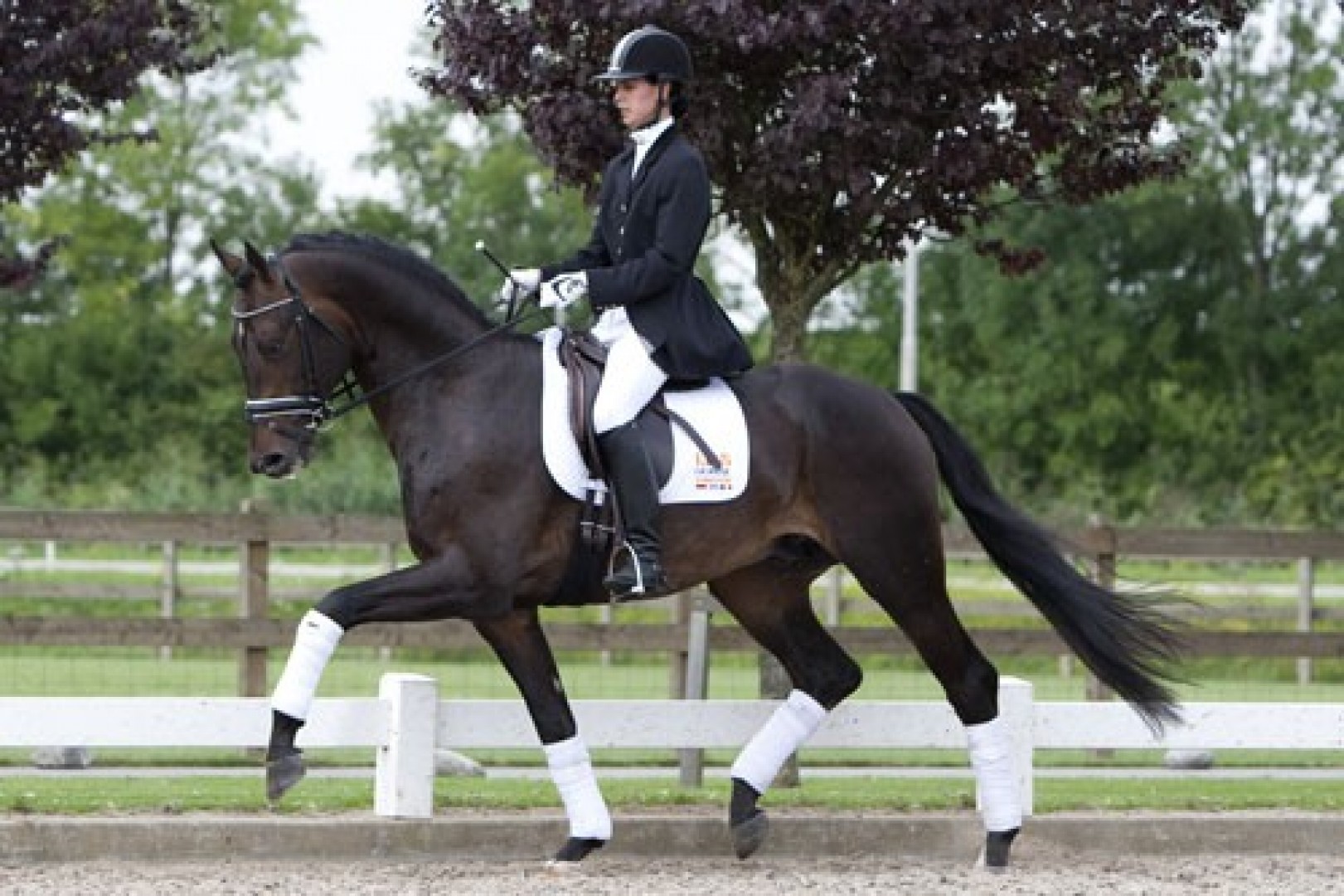 Cadans M is an honest and reliable stallion with a good attitude. The stallion is very willing to work and can be worked well. The walk is pure and has more than sufficient scope. The trot is active, has more than sufficient scope with good suppleness. At the extensions the stallion goes wide behind. The canter is active and has more than sufficient scope. The stallion should have more shoulder freedom in the basic gaits. Cadans M moves with good posture and balance. As a dressage horse, Cadans M has more than sufficient to much talent and gives his rider a good feeling.