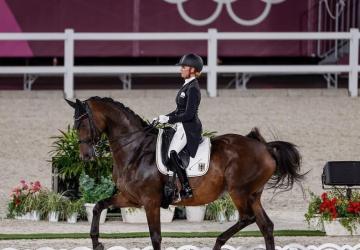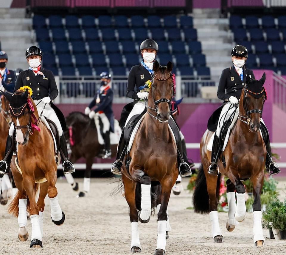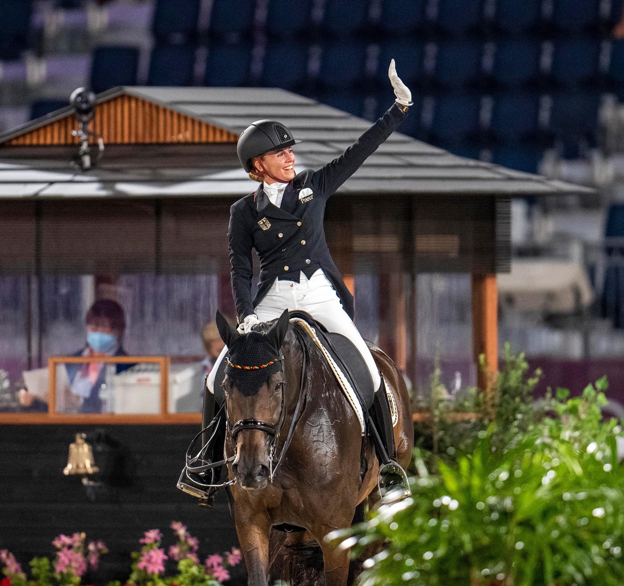 Horses.nl had er ook wel vrede mee gehad als TSF Dalera BB v. Easy Game het wereldrecord van Valegro (94,3%) had verbroken. Want dressuur ziet er met Jessica von Bredow-Werndl en de Trakehner merrie nog makkelijker uit dan met Dujardin-Valegro in het verleden. Maar de zevenkoppige Tokio-jury bleef er onder (91,732%) Maar met Olympisch goud nemen we ook genoegen. Zilver voor Isabell Werth en Bella Rose (89,657%, Brons voor Charlotte Dujardin en de tienjarige Gio (88,543%). Edward Gal komt met de negenjarige Total U.S. v. Totilas op een zesde plaats (84,157%) uit. Achter Cathrine Dufour en Bohemian v. Bordeaux(87,507%) en Sabine Schut-Kery en Sanceo (84,3%).