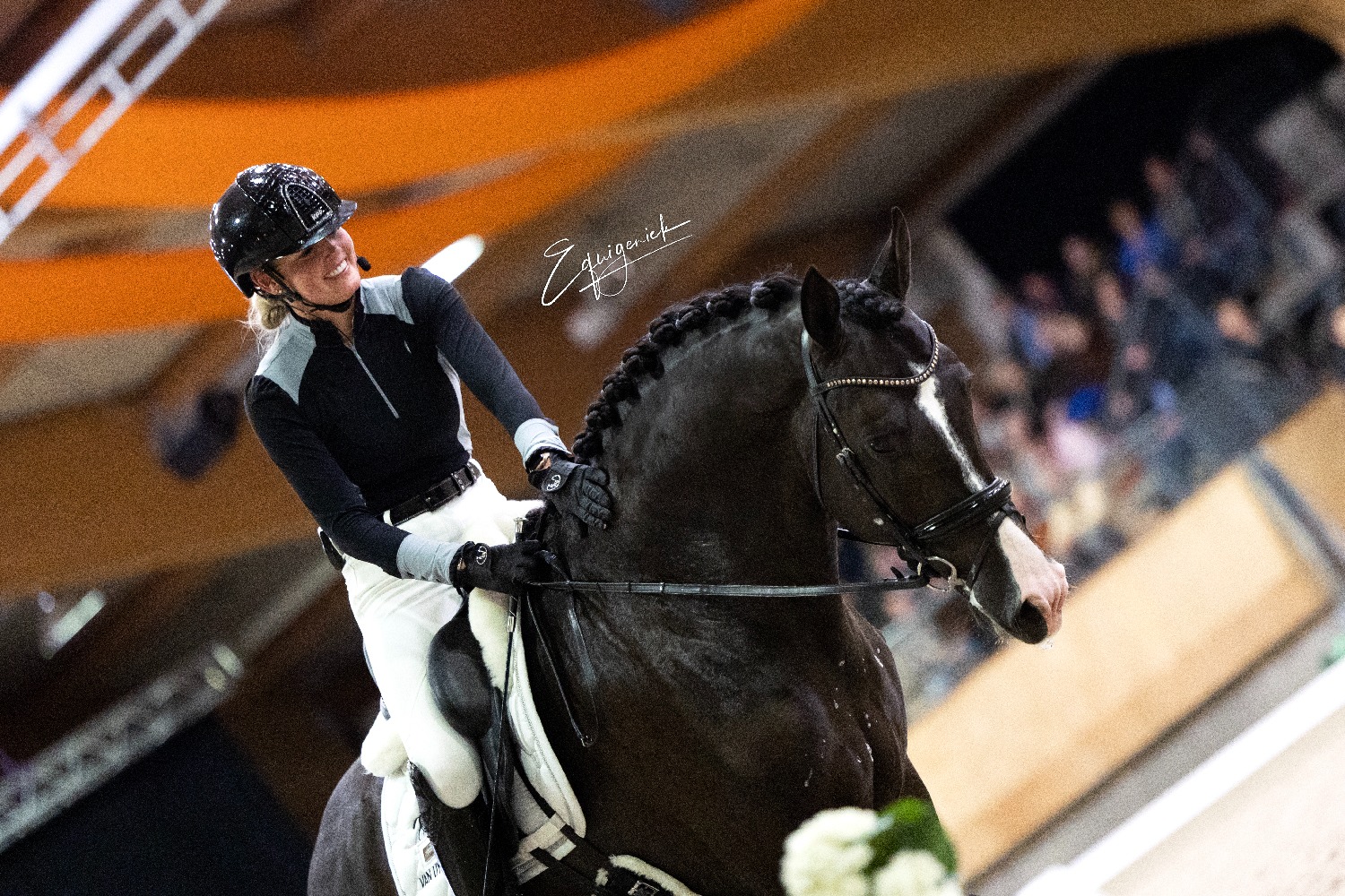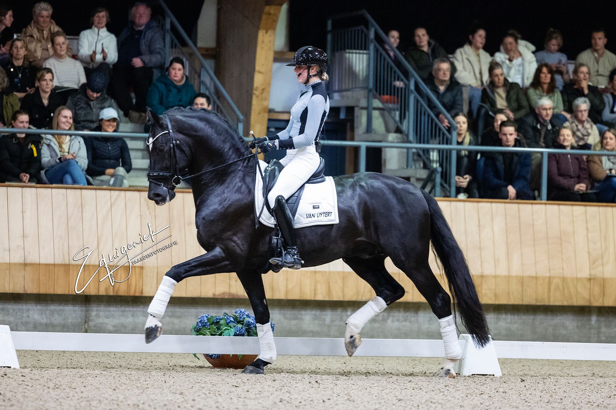 Several young talents from our Stallion Station, including Extreme U.S., O'Toto van de Wimphof, One Million, Next Romancier, and Number Two, were presented here under the direction of Joop van Uytert, Marion Schreuder, and Diederik van Silfhout. In addition, top talents Johnny Depp, Fürst Dior, and Dante U.S. were also shown under the saddle.
