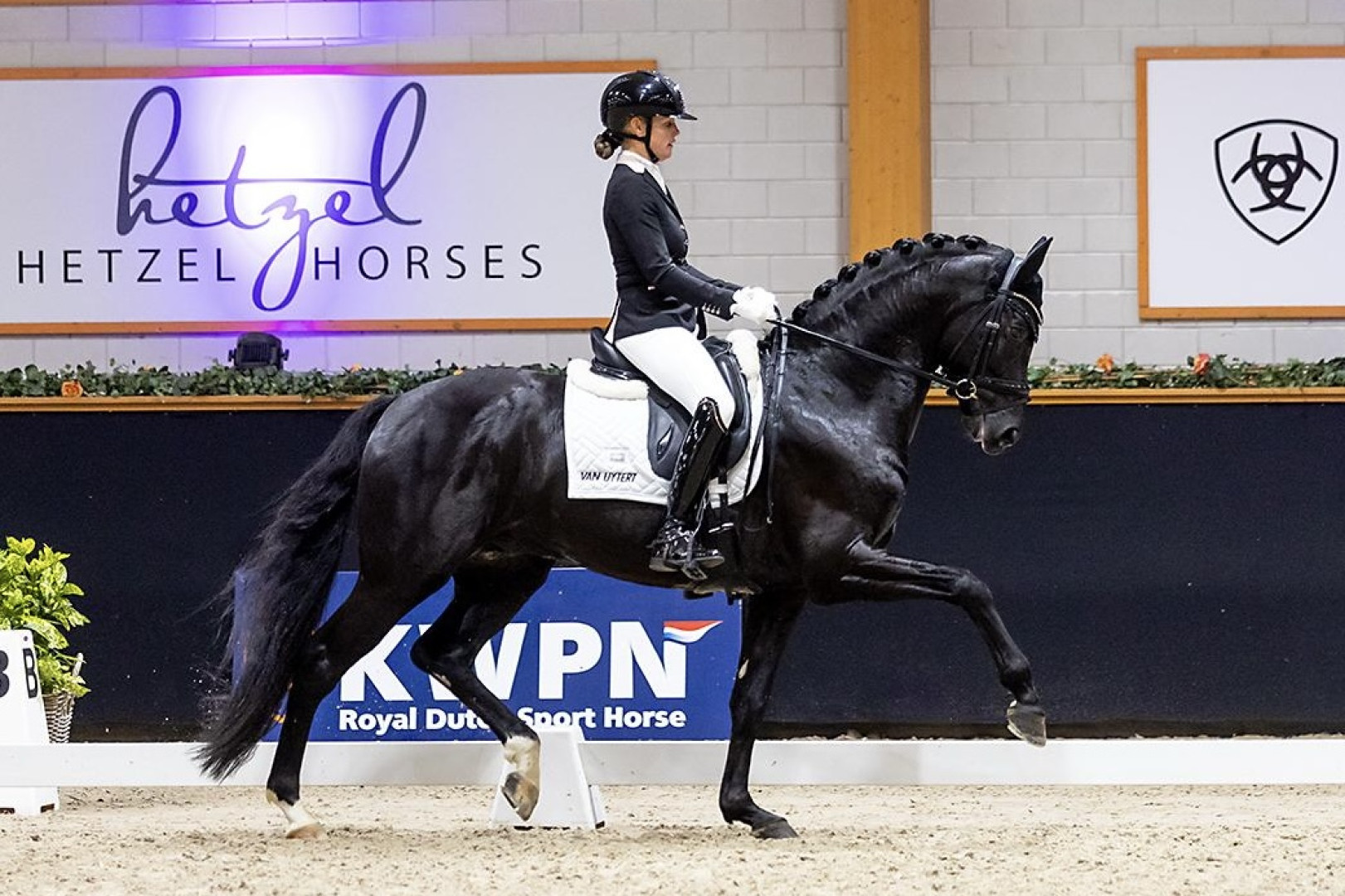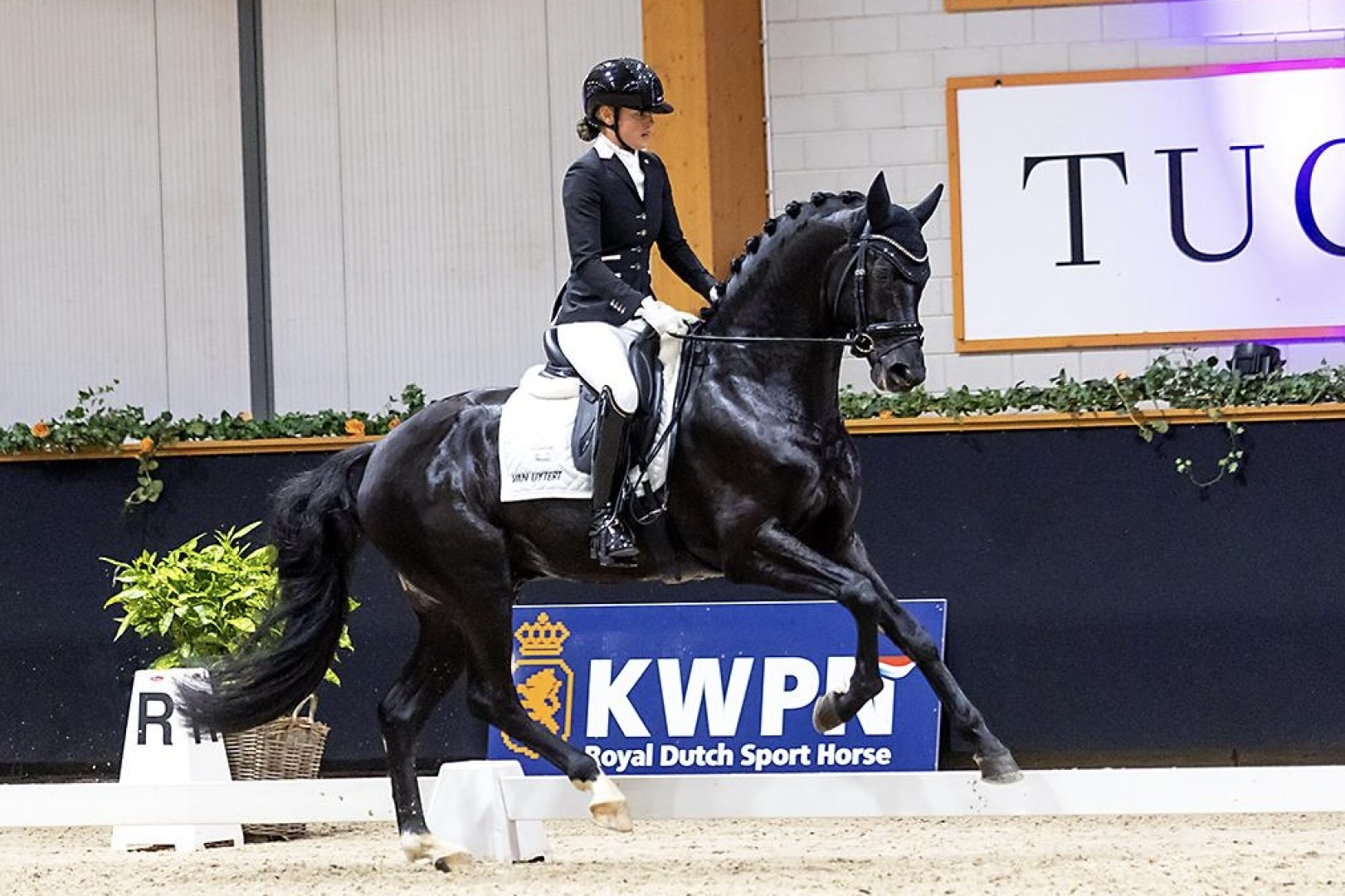 At the beginning of 2024 they had already made mega advertising together. This talent has developed incredibly well in 2023 under Gerrel Vink and he showed himself fantastically in the VSN Final. During the preliminary round he already received a 9.5 for the trot - 9.5 canter - 7.8 walk - 9.0 for the general impression. His first presentation in a young horse competition was also a hit. At the Equisport Cup he came third in the 3-year-old dressage horses with a fantastic score of 86.2%. Description Horses; Third was the Lambourghini U.S. (Lord Europe x Sir Donnerhall ) ridden by Gerrel Vink. “This stallion has a lot of attitude, walks cleanly and actively, was well closed in trot with a lot of foreleg technique and jumped in gallop with the withers up. However, to finish higher, he should have been a fraction quieter in the contact,” according to the jury.