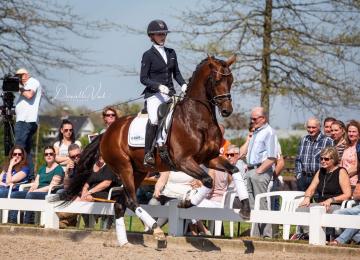 Geniaal zet zijn zegereeks onder Dinja van Liere voort, door de Prix St. Georges te winnen in Uden met 74.12% (05 Mei 2019)