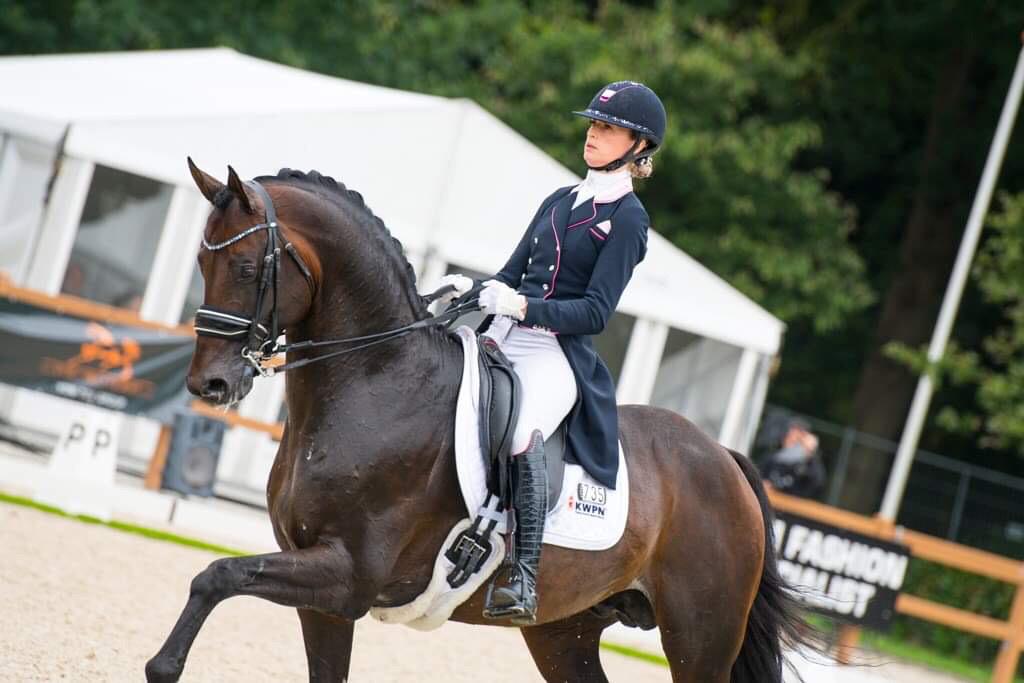 “Hermès heeft een periode gehad dat hij wat moeite had om z’n focus te houden, maar ik merk dat hij het nu heel leuk vindt om mee op pad te gaan.” Ze vervolgt: “Hermès heeft veel talent voor de piaffe en passage en dat deed hij in de proef ook heel goed, echt voor achten en negens. Dan zie ik toch dat, ook al gaat er iets fout, ik nog genoeg over heb om dat te kunnen compenseren.”