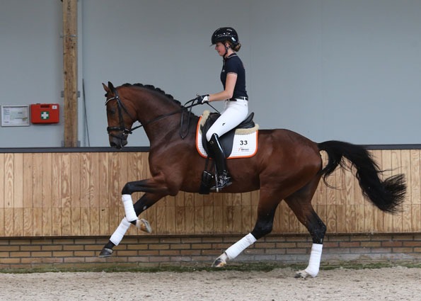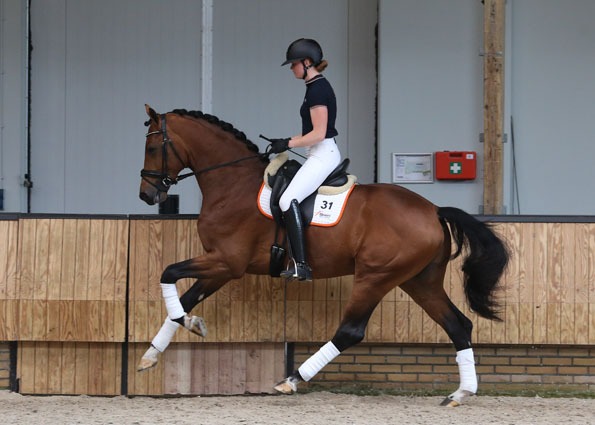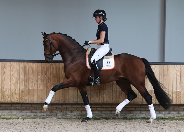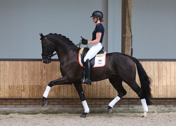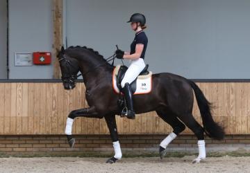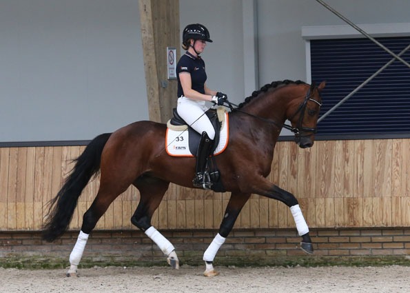 Ook de hengst met de op één na hoogste punten (86,5 punten) is van Joop van Uytert (en de fokkers Carla en Eelco Rienks) en ook dat zou zomaar eens een veeldekker kunnen worden. O’Toto van de Wimphof (Toto jr. x Riccione x Sandro Hit) beweegt met zeer veel schoudervrijheid, lossigheid, souplesse en voorbeen. Bert Rutten “Een hengst met veel expressie in het voorbeen, die zelf al probeert te verzamelen en veel natuurlijk schakelvermogen heeft.”