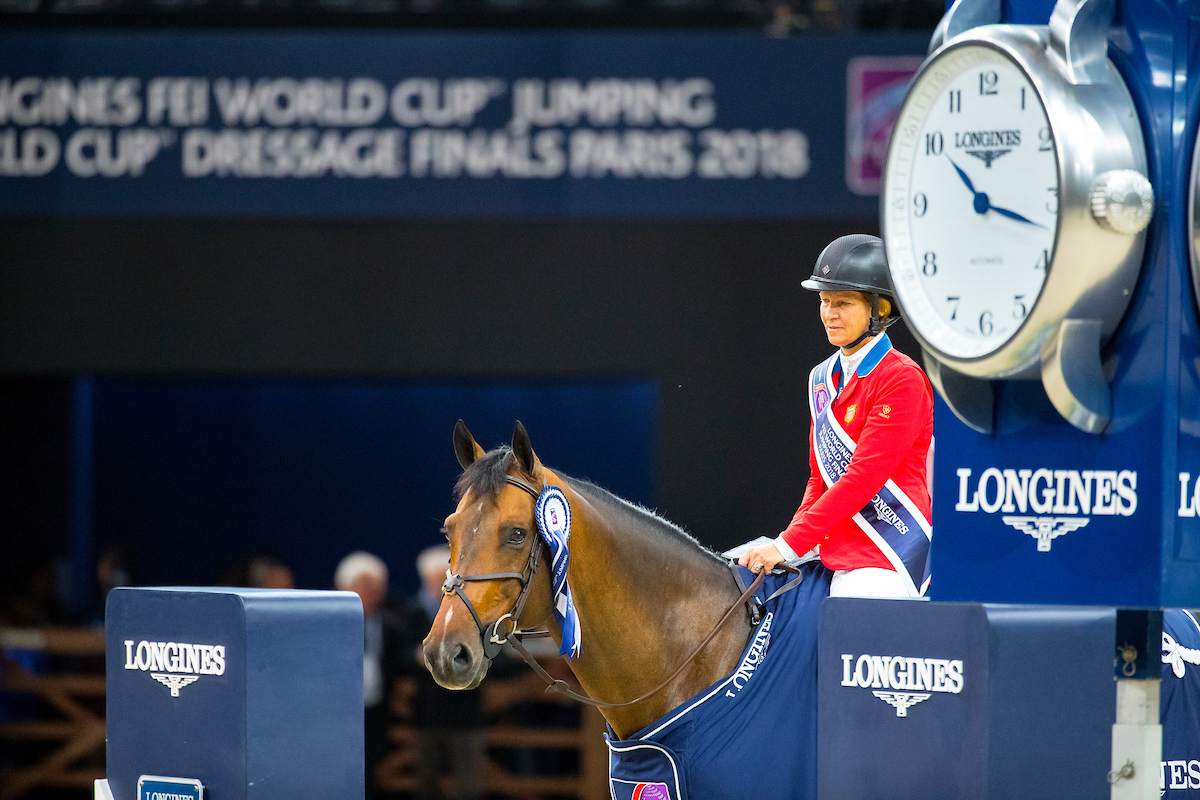 Dankzij opnieuw een toprit in het tweede onderdeel van de Wereldbekerfinale in Parijs, heeft Beezie Madden haar leidende positie versterkt. Met de KWPN-goedgekeurde hengst Breitling LS staat ze nu één balk los van de concurrentie.