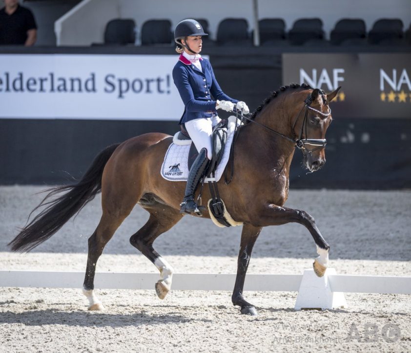 Met onze merrie Haute Couture noteerde ze maar liefst 72,86% en 73% en schreef daarmee beide proeven met overmacht op haar naam. Vorig jaar wonnen Van Liere en Haute Couture de Pavo Cup voor vijfjarigen en eindigden ze als tiende op het WK jonge dressuurpaarden. In oktober debuteerden ze nog succesvol met een overwinning in het ZZ-Licht en nu was er dan de meer dan succesvolle overstap naar de subtop.“Ze liep het ZZ-Licht zo makkelijk door dat ik dacht dan moet ZZ-Zwaar misschien ook wel lukken. Dat lukte zeker en de proeven gingen heel fijn”, vertelt Van Liere enthousiast. Haute Couture is gefokt door ons en Albert Drost uit de merrie Destiney dochter van de tophengsten Krack C en Jazz.