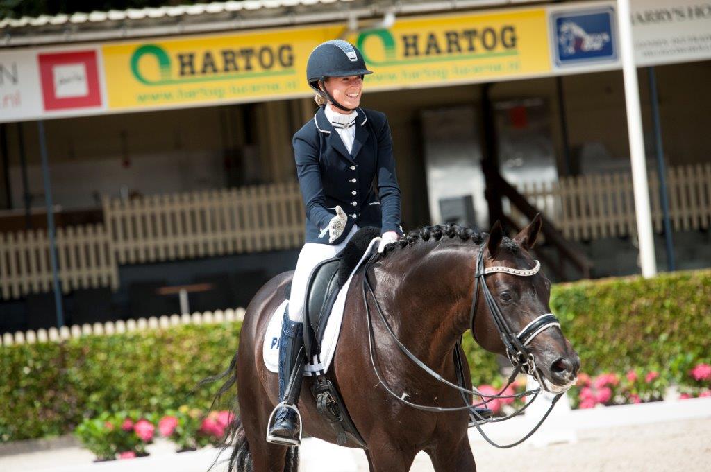 Onze zevenjarige KWPN-hengst For Gribaldi liep met zijn vaste amazone Dinja van Liere gister naar een klinkende overwinning in het ZZ-Zwaar op de subtop wedstrijd in Den Dungen. Dinja vertelt enthousiast: ‘Wat was hij zijn best aan het doen! Ik was heel erg trots op hem. In de eerste proef zaten nog teveel dingetjes maar was toch ook al goed voor 67% en in de tweede knalde hij naar bijna 71%. We gaan lekker verder oefenen; hij is nog jong genoeg en heeft net als zijn vader veel talent voor de zwaardere oefeningen!’