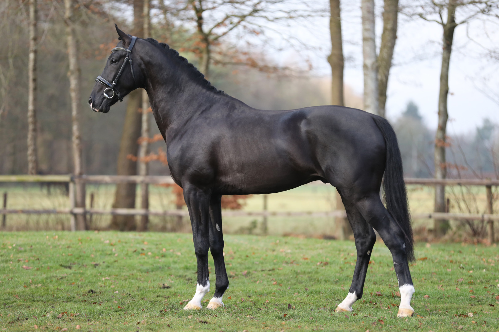 Zo'n mooie zwarte hengst van Totilas met 4 witte voeten, een super stam met veel sport en dan  deze droomafstamming