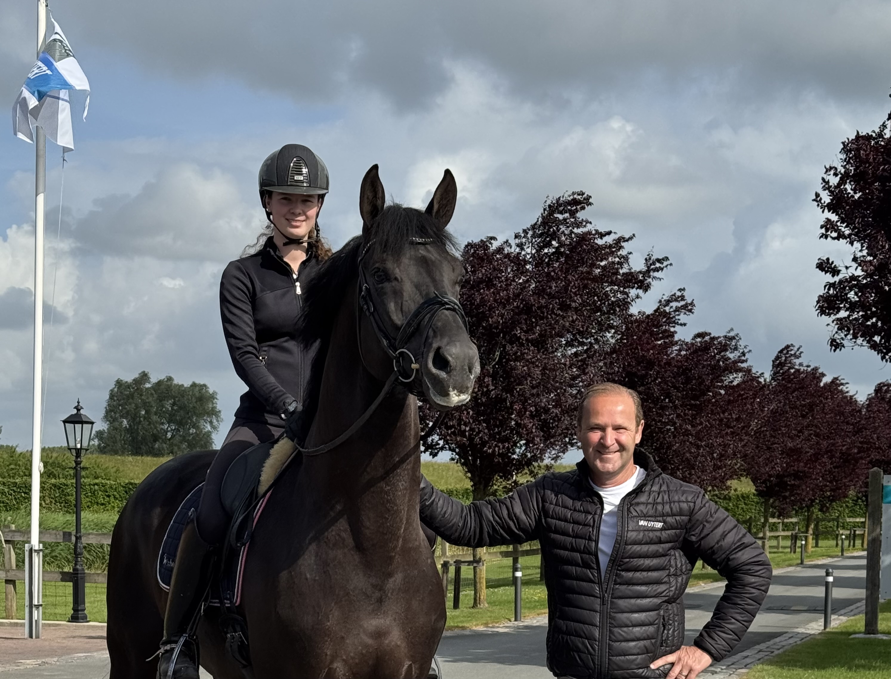 Soms verkoop je een paard dat je eigenlijk niet wil verkopen. Enkele goede amazones uit USA zijn al een tijd op zoek naar goede paarden van 8 tot 10 jaar die de kwaliteit laten zien voor de topsport. Toppaarden die echt hoge scores kunnen lopen zijn er niet zoveel en dan moeten ze ook nog te koop zijn. Ook wij zijn diverse keren benaderd voor paarden. Uiteindelijk kreeg ik via een zeer goed contactpersoon door dat een 6-jarige supertalent ook wel zou kunnen passen. Ik zei, die heb ik maar wil ik niet verkopen. Een hengst met zeer veel kwaliteit, een prachtig front, zeer goed stappen, draven en galopperen. Eigenlijk was dit mijns inziens een compleet paard voor hen. Na enkele keren contact te hebben gehad hebben we gezegd probeer hem maar eens dan praten we wel verder. Dit paste zo fantastisch dat de amazone gelijk helemaal verliefd op One Million was. Zodoende is de verkoop tot stand gekomen. Robin Heiden heeft hem opgeleid en fantastisch werk met hem gedaan, met als hoogtepunten finale W.K., reservekampioen Pavo Cup en KWPN-Hengstencompetitie. De nieuwe amazone van One Million wordt Adrienne Lyle van Zen Elite Equestrian Center. Wij kijken vol verwachting naar deze combinatie in de toekomst uit en gaan ze zeker bezoeken in Florida.