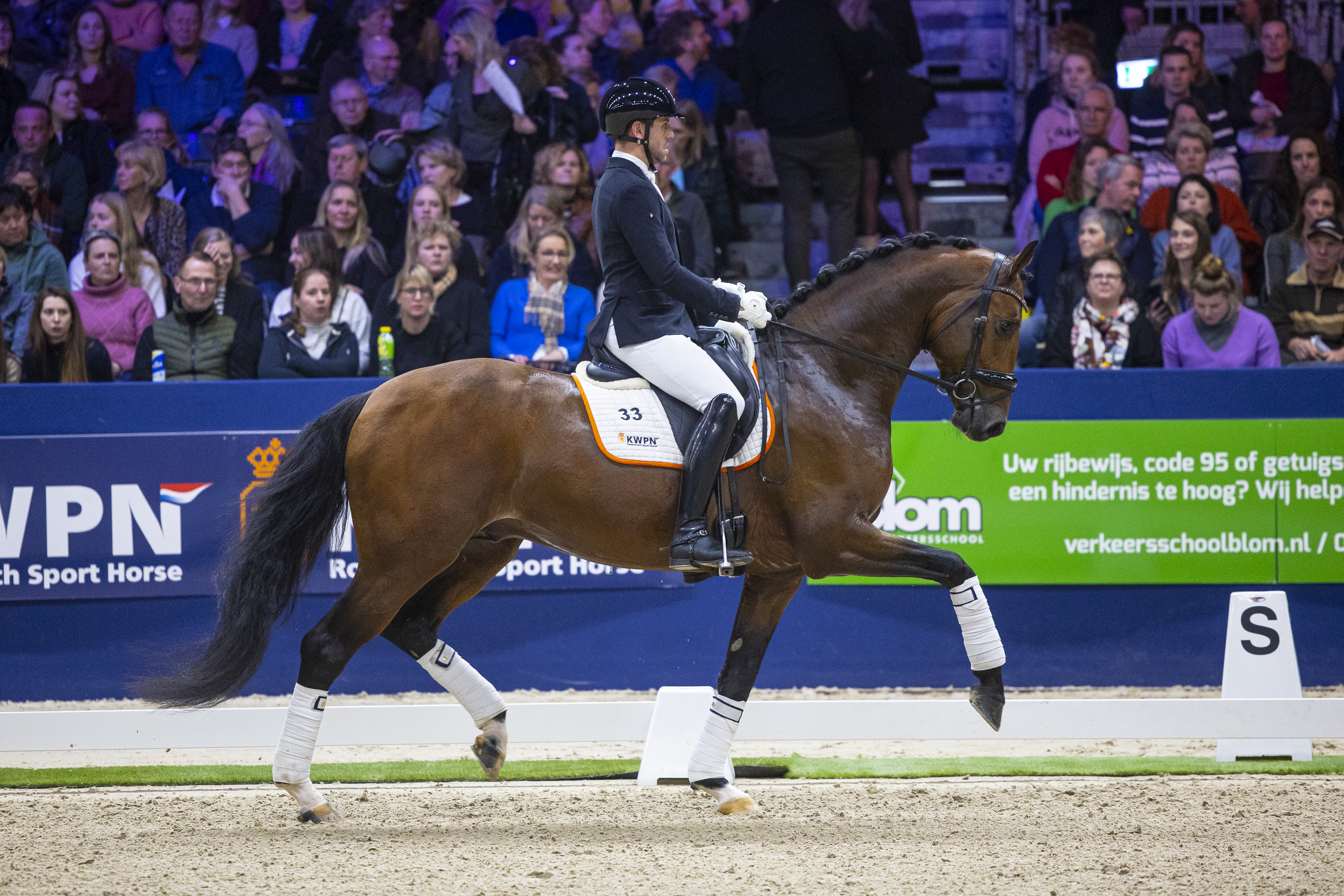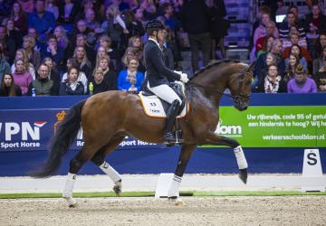 Ook werd onze hengst Oslo, verrichtingskampioen Springen 2022, gepresenteerd in Den Bosch. Hij liep een super presenatie onder Jarno van Erp. Een hengst waar wij een grote toekomst van verwachten.