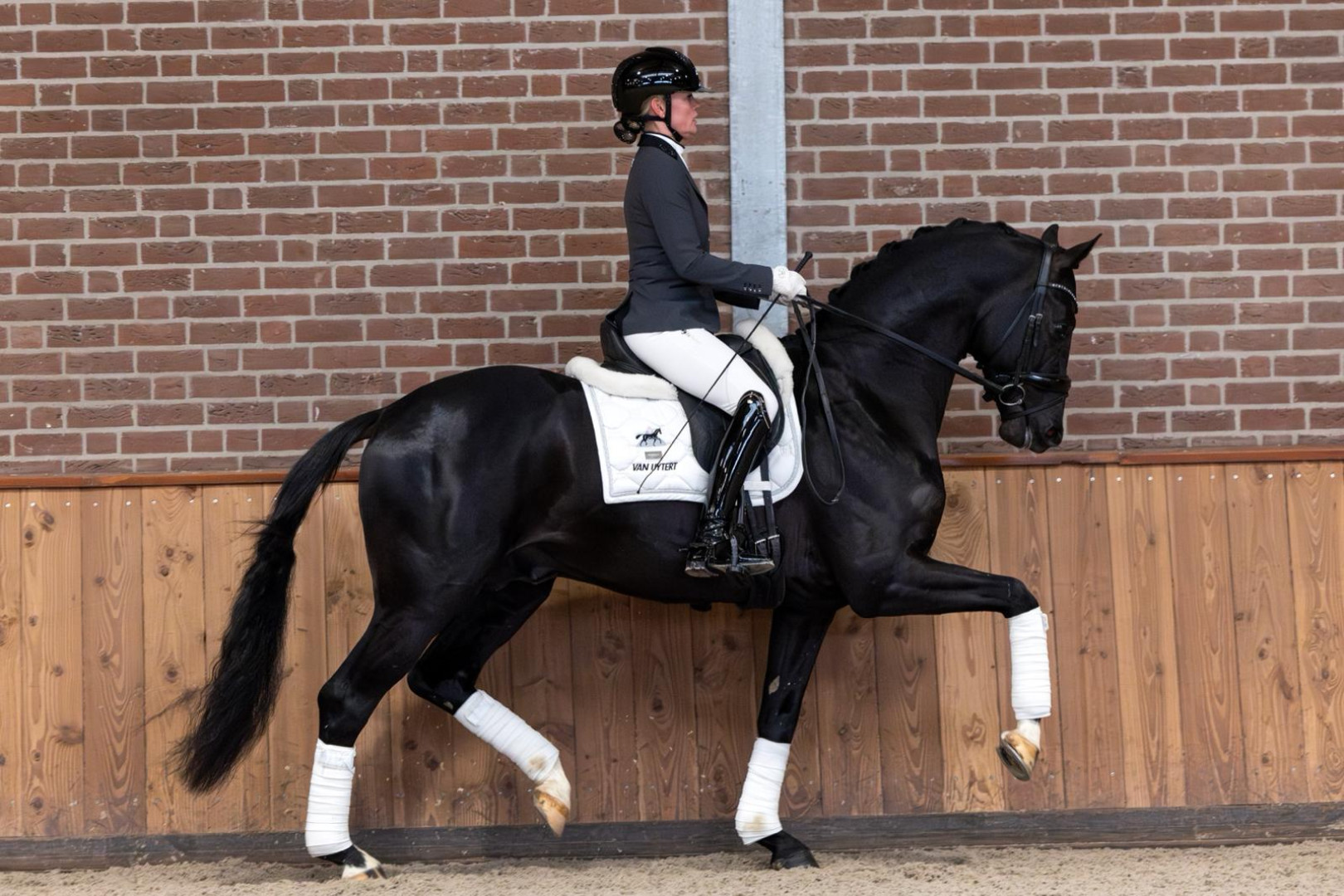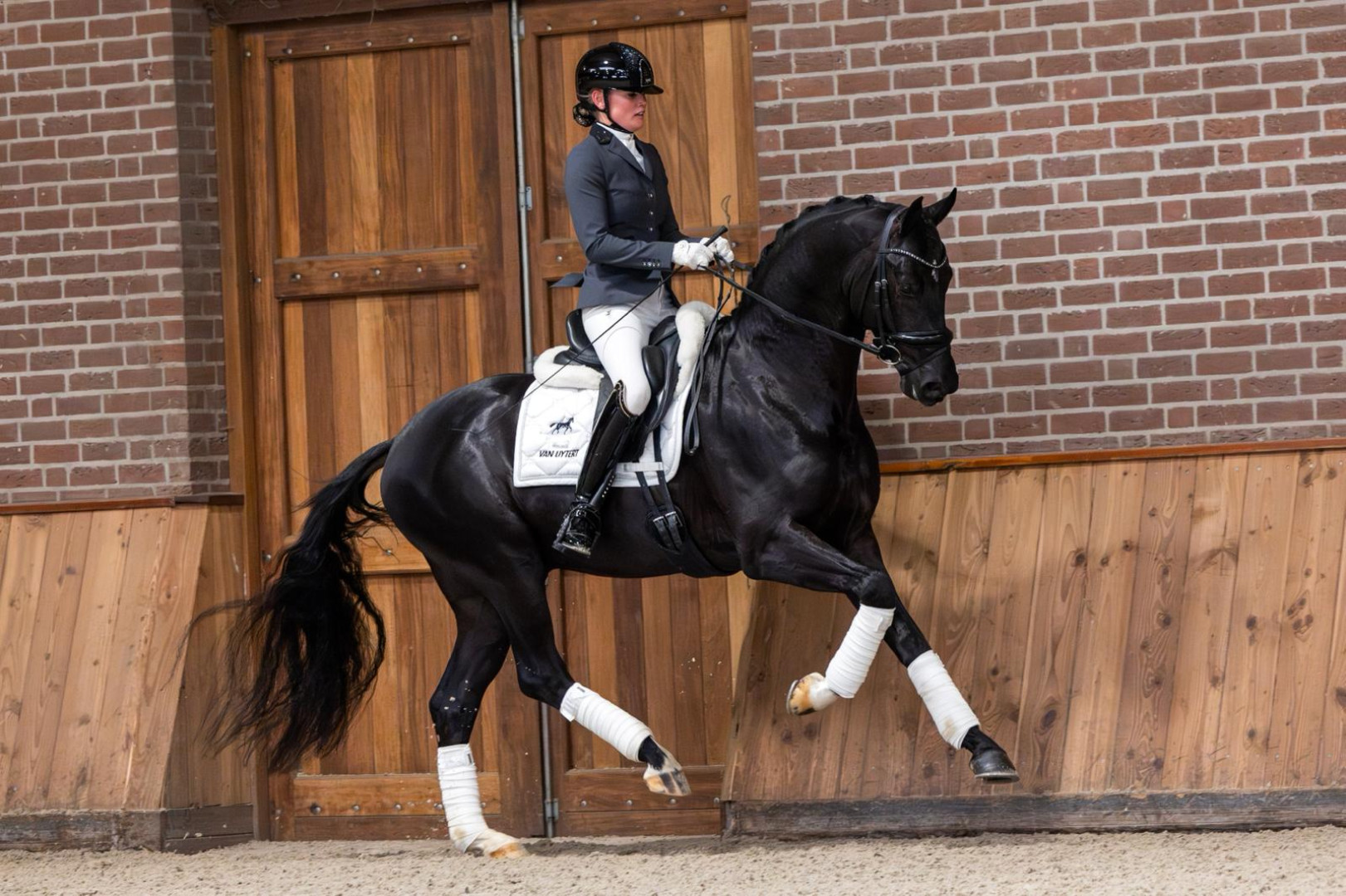 Wat een schitterend optreden hadden onze hengst Purple Rain en Gerrel Vink tijdens de presentatie van de nieuwe jaargang tijdens de KWPN-Stallionshow. Wat een kracht in het achterbeen toont deze jonge hengst nu al. Purple Rain wordt thuis na afgelopen dekseizoen rustig verder opgeleid door Renate van Uytert van Vliet en dat werpt zijn vruchten af. Hij wordt stabieler, begint weer met een mooie tact te lopen en we zijn heel happy met zijn ontwikkeling. Voor de Stallionshow leek het ons beter dat Gerrel hem wilde rijden in deze hectiek voor 3.5 jarige hengsten en dat pakte super uit.