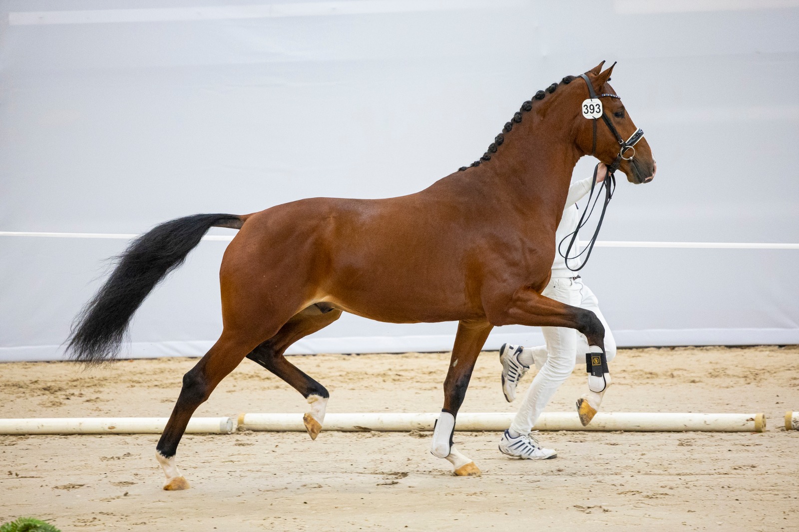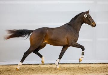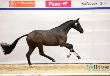 Van onze stal zijn 5 dressuurpaarden doorverwezen naar de 2e bezichtiging, waaronder een zoon van onze Bronzen medaillewinnaar Hermès. Deze Patheon L.E., Hermès x San Remo x Formateur, gefokt door Saskia en Thijs Schaap, komt uit een sterk bewegende moederstam, liep met veel afdruk door de kooi en liet daarmee een ontzettend goede indruk achter.